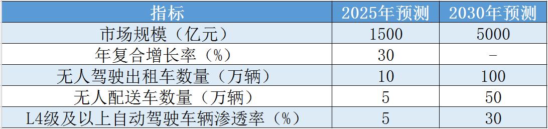 六、表格:中国无人驾驶行业关键数据预测(2025-2030年)