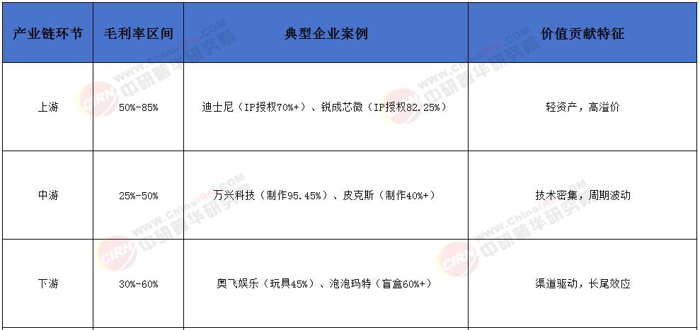 头部企业聚焦头部IP(如“米老鼠”“蜘蛛侠”),毛利率可达80%+。