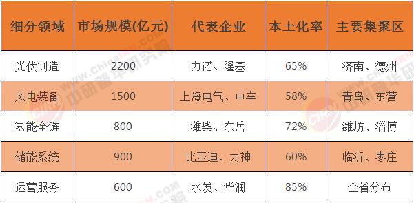 表1:2024年山东绿色能源细分领域市场规模及企业分布