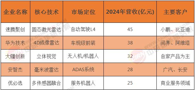 激光雷达(LiDAR)方案占比42%(速腾聚创、禾赛科技主导)