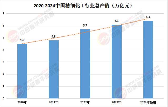 到2023年随着国内外经济复苏和精细化工产品需求增加,中国精细化工行业保持了较快的增长势头,全年总产值将达到6.1万亿元,同比增长7%,占化工行业总产值的比重提高到44.2%。