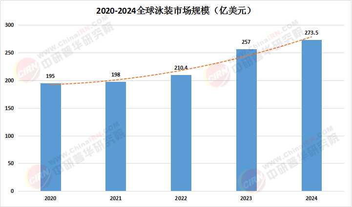 数据显示,全球泳装市场规模持续攀升。2023年全球泳装市场规模约为257亿美元,预计2024年将达到273.5亿美元,年均复合增长率(CAGR)约为6%。其中,北美和欧洲作为成熟市场,需求稳定并保持稳健增长;而亚太地区,特别是中国和印度,正成为泳装市场的重要增长引擎。
