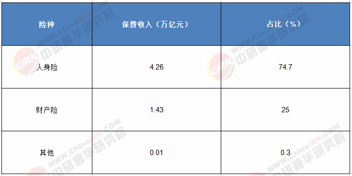 图表1:2024年中国保险行业各险种保费收入占比