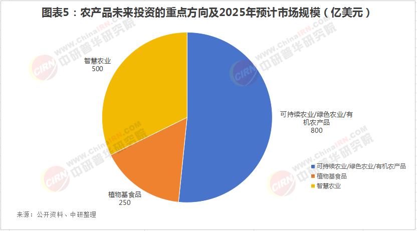 可持续农业、植物基食品和智慧农业是未来投资的重点方向。绿色农业和有机农产品市场需求快速增长,预计2025年市场规模将达800亿美元。植物基食品市场规模从2023年的120亿美元增长至2024年的180亿美元,预计2025年将突破250亿美元。