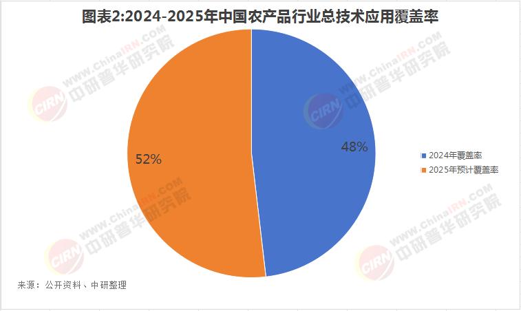 2024年中国农产品行业技术应用覆盖率达到65%,预计2025年将提升至70%以上。精准农业通过物联网(IoT)和大数据技术优化农业生产效率,覆盖率已达42%。