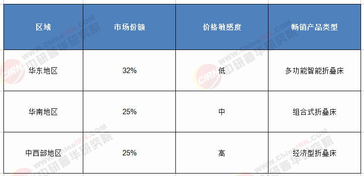 · 华东/华南:高端市场主导,消费者关注“环保材质”“国际认证”,智能折叠床占比超30%。