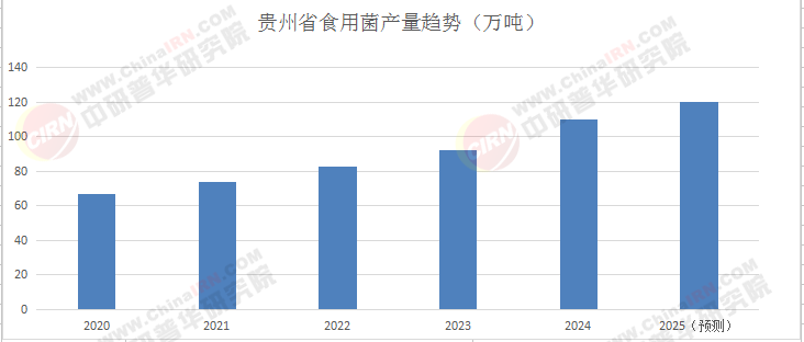 图表1:贵州省食用菌产量趋势(2020 - 2025年)
