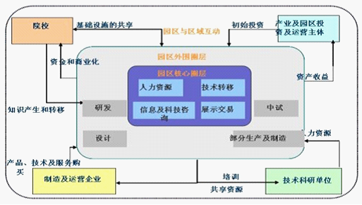 例如:一个高新园区的成长,更多的会依赖人力资源、技术转移能力、信息及咨询服务能力以及展示交易服务能力,在这个核心要素的驱动下,使一个产业的研发、设计、中试、制造得到一定的核心优势基础,通过这个平台功能对外部资源、包括科研机构、产业资本、院校及制造运营企业的吸引,以达到一个循环成长的有机过程。