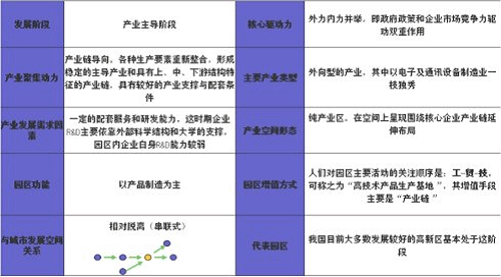 由于高新技术园区功能的特殊性,决定了高新技术园区适合打造前端性产业链(研发、设计、中试等)。未来高新技术园区的发展在于比技术创新能力和技术转化效率,我国高新技术园区也将逐步走向以研发中心、研发型产业、科技服务业为主体的研发型高新技术园区。