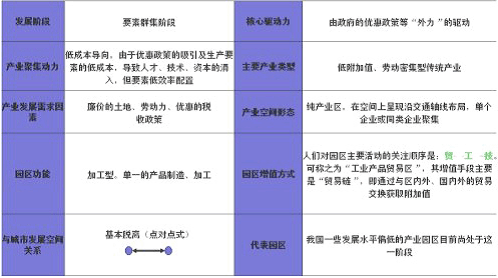 所谓产业园区,实际上是由于生产行为和交易行为带来的一种空间聚集模式,初期的聚集所带来的相关功能需求和衍生经济行为,造成了园区不同发展阶段的聚集方式和空间特征,也成为我们定义发展阶段特征的主要依据。我们在这里把产业园区的发展定义为四个阶段: