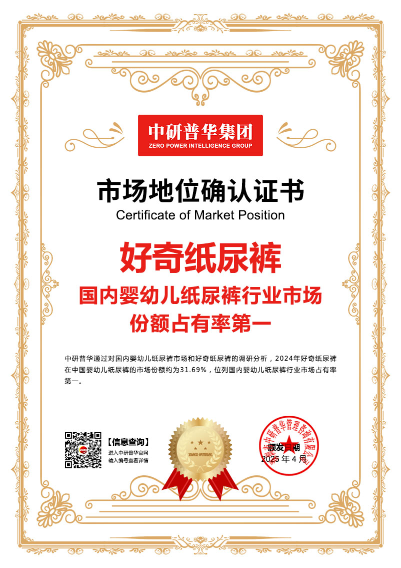 中研普华通过对国内婴幼儿纸尿裤市场和好奇纸尿裤的调研分析,2024年好奇纸尿裤在中国婴幼儿纸尿裤的市场份额约为31.69%,位列国内婴幼儿纸尿裤行业市场占有率第一。