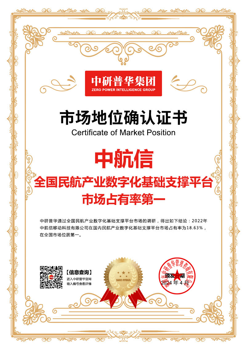 中研普华通过全国民航产业数字化基础支撑平台市场的调研,得出如下结论:2022年中航信移动科技有限公司在国内民航产业数字化基础支撑平台市场占有率为18.63%,在全国市场位居第1。
