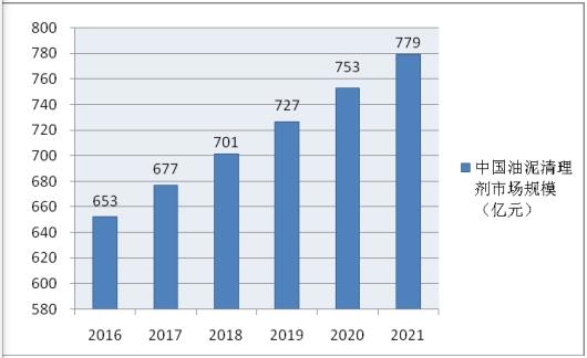 图表:2016-2021年我国油泥清洗药剂市场规模