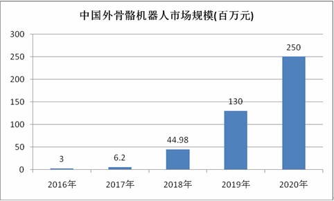 图表:2016-2020年中国外骨骼机器人市场规模
