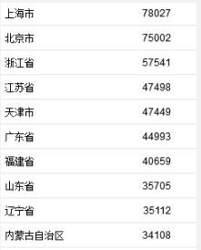 上海北京人均可支配收入超7万元