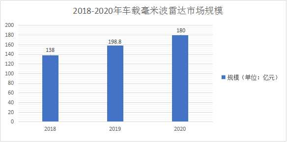 图表:2018-2020年车载毫米波雷达市场规模