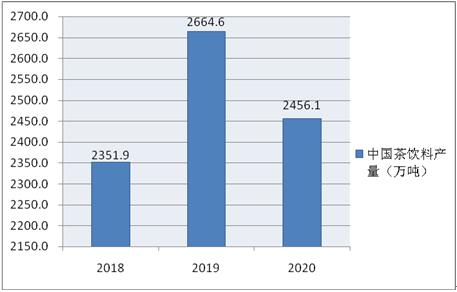 根据相关数据,2018-2020年中国茶饮料产量情况如下图所示: