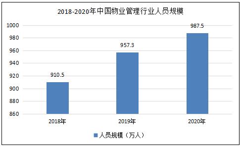 据统计,2018年我国物业管理从业人员规模达到910.5万人,2020年从业人员达到957.3万人。