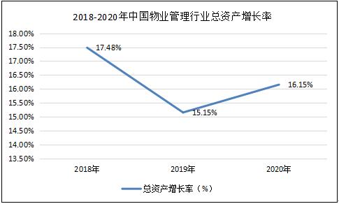 总资产增长率一定程度上反映了行业发展能力,2018年我国物业管理行业总资产增长率17.48%,2020年总资产增长率16.15%。