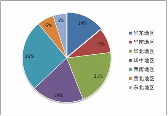 图表:我国麦片行业区域市场占比情况(单位:%)