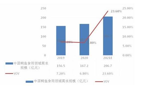 图表:2019-2021年我国鳄鱼食用领域需求规模情况