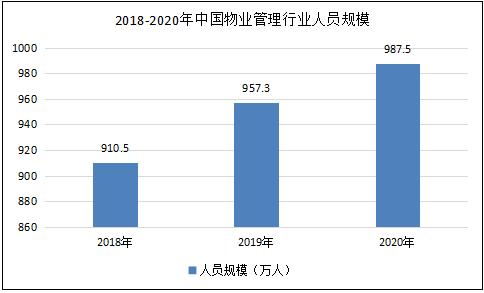 据统计,2018年我国物业管理从业人员规模达到910.5万人,2020年从业人员达到957.3万人。