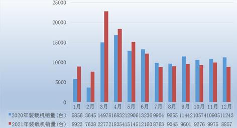 图表:2020-2021年各月挖掘机制造企业销售量