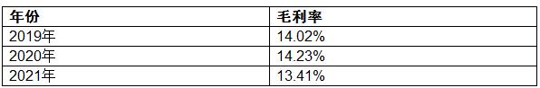 2019年新能源汽车电池扎带毛利率为14.02%,2020年毛利率为14.23%,2021年毛利率下降至13.41%。