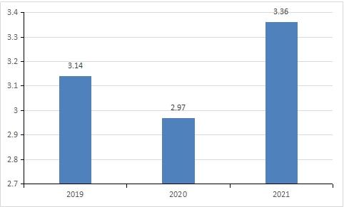 图表:2019-2021国内冷链集装箱租赁行业从业人员(单位:万人)