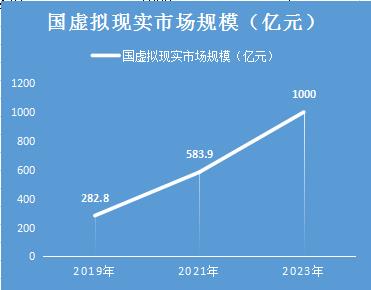 经过多年发展,虚拟现实产业初步构建了以技术创新为基础的生态体系,正迈入以产品升级和融合应用为主线的战略窗口期。相关数据显示,2019年至2021年,我国虚拟现实市场规模不断扩大,从2019年的282.8亿元增长至2021年的583.9亿元,市场规模实现翻番。预计未来3年将保持快速增长,到2023年将突破1000亿元大关。