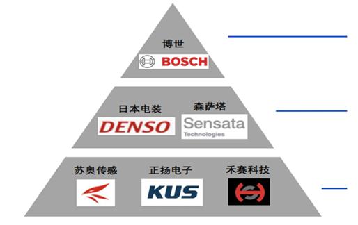 图表:汽车传感器行业竞争格局呈“正三角”形式