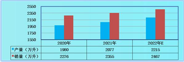 近年来,随着物质条件的提高,清酒的消费逐渐增加,即使在新冠疫情的背景下,我国清酒的销量没有下降,反而创下新高,预计2022年清酒产量达到2215万升,销量达到2467万升。