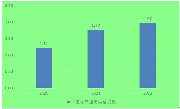图表:2020-2022年中国房屋租赁行业供给(单位:万亿元)