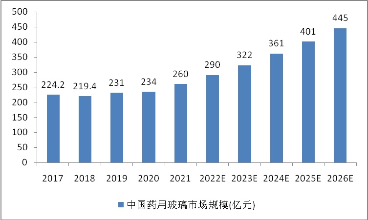 图表:2017-2026年中国药用玻璃市场规模及预测
