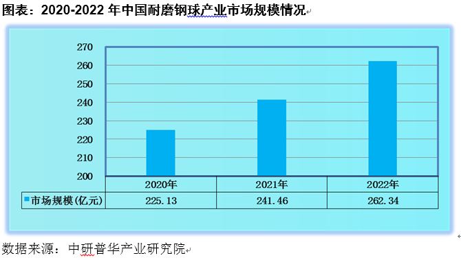 矿山产业链具有流程长、工序多、过程复杂等诸多特点,普遍存在产能过剩、劳动效率低、安全环境压力大等痛点,依托于5G+工业互联网进行绿色、智慧高质量转型发展是行业的必然选择,近年来我国耐磨钢球产业的发展迅速,2022年耐磨钢球产业的市场规模达到262.34亿元,同比增长8.64%。