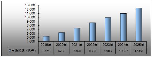 图表:2019-2025年中国表面处理行业市场规模预测