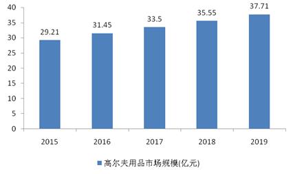 图表:2015-2019年我国高尔夫用品市场规模