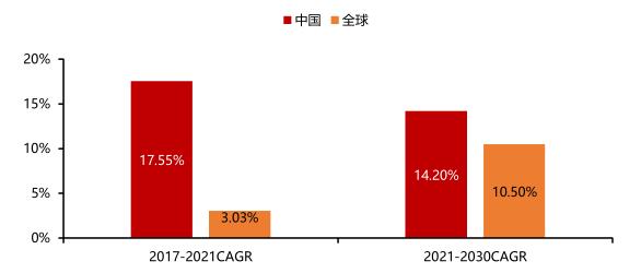 图表:中国医美行业复合增长率超全球市场