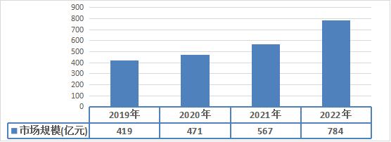 根据中研研究院《2023-2028年中国ABS行业深度调研与发展前景预测报告》分析得知,随着国民生活水平提高,ABS生产技术的不断改进和提高,产品品质不断提高,市场规模持续增长,2019年我国ABS行业的市场规模为达到419亿元,2022年增长到784亿元,同比增长38.27%。