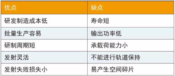 轻小型化:与重达几吨的普通卫星相比,小卫星重量只有克至百千克的量级。轻型复合材料技术以及微型技术集成化应用是小卫星轻型化发展的重要前提。