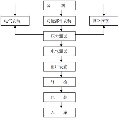 根据公布的数据来看,净水器的技术工艺流程大致经过了以下几个步骤:备料-功能部件安装-压力测试-电气测试-出厂设置-终检-包装-入库等。其中通过压力测试之前,还包括了电气安装和管路连接环节。