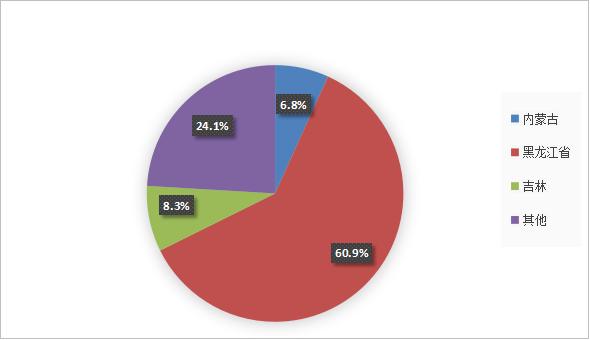通过国内第三方工商注册信息查询机构-"企查查"查询"双大豆"结果显示,通过"存续和在业、农林牧渔"等选择,企查查数据显示黑龙江省相关双青豆企业占比较高,因此双青豆行业区域集中CR1达到60.9%。