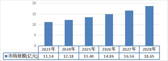 图表:2023-2028年国内工业用高端弥散供氧设备市场规模预测