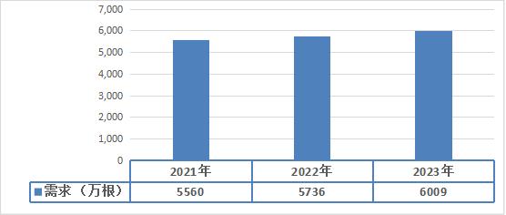 新能源汽车销量持续高速增长、中国品牌乘用车份额稳步提升、汽车出口连创新高,带动中国汽车车桥行业的需求,2023年中国汽车车桥行业需求规模达到6009万根,同比增长4.76%。