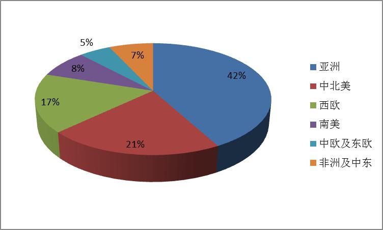 从市场区域分布来看,全球香精香料行业市场主要集中在亚洲、美洲及欧洲等较发达地区,而其它地区市场规模较小。具体来看,2022年全球香精香料市场中,亚洲占比最高,达42%,其次为中美及北美地区和西欧地区,占比分别为21%和17%。