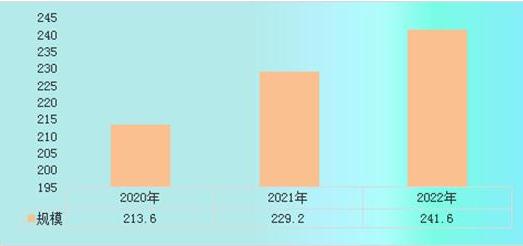 近年来美术馆受到市民追捧,各地都刮起了一阵“美术馆热”,这不仅是居民生活水平提高的表现,也是居民精神文明需求的体现。2020年我国美术馆市场规模为213.6亿元。2021-2022年中国美术馆行业市场规模由229.2亿元上升到241.6亿元。