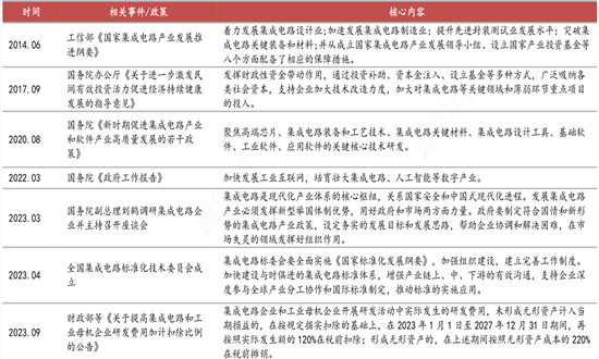 回顾国内半导体行业历史政策,从国家到地方先后出台多项扶持政策,推进半导体产业的发展。从方向上看,现有扶持政策聚焦高端芯片、集成电路装备和工艺技术、集成电路关键材料、集成电路设计工具、先进存储、先进计算、先进制造、高端封装测试、关键装备材料、新一代半导体技术等关键“卡脖子”领域;从方式上看扶持政策深入财税、融资、平台、对外开放、进出口政策、产业园区建设、产业链孵化器、国产替代等诸多细化抓手,为半导体产业的高质量发展提供了可实际操作的行动指南。