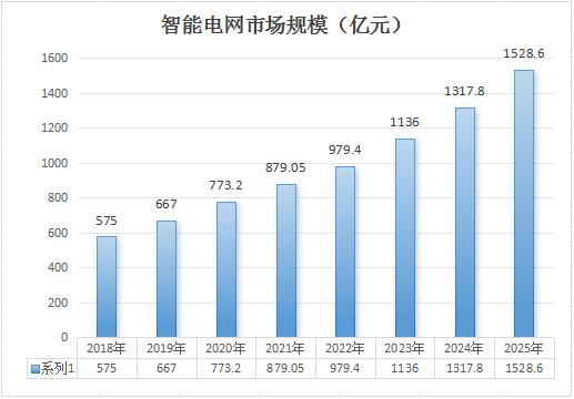 数据显示,我国智能电网的市场规模由2018年的575亿元增长至 2022年的979.4 亿元,复合年均增长率达到 16%,照这个增速,预计到 2025年智能电网行业市场规模有望达到1528.6亿元。
