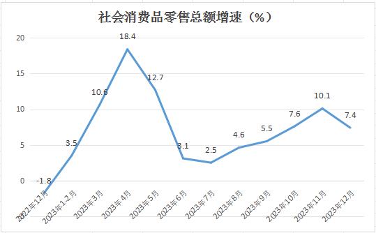2023年12月社会消费品零售总额增速较前月有所回落,意味着2024年促进消费的压力依然比较大,未来刺激内需的政策依然不能停。