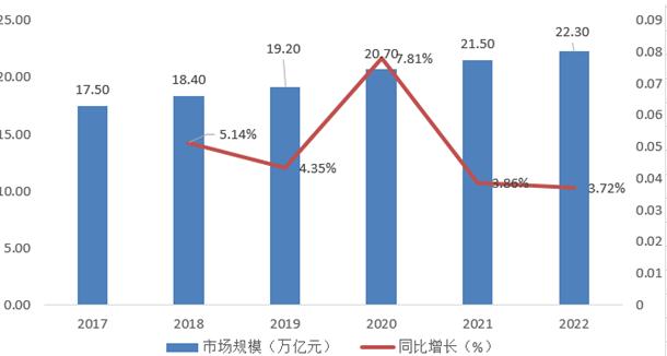 2022年,房产证抵押贷款市场规模为22.3万亿元,同比增长3.72%。